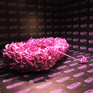From Infinity to Dots…the next installation is the Dots Obsession- Love Transformed into Dots (2007, installed 2017). This room is full of pink and black polka dot balloons, used to disrupt the viewers path. The work represents contrasting scales- the smallness of the space (and tiny sized space as seen through the peephole of a balloon- outside of the room), mixed with the largeness of the mirrored room where the balloons are life-sized and go on infinitely.